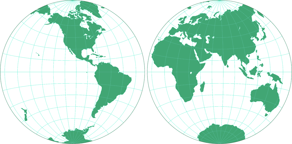 | Description | Breusing Harmonic Map Projection Image, green silhouette map. 15° graticule. | |||