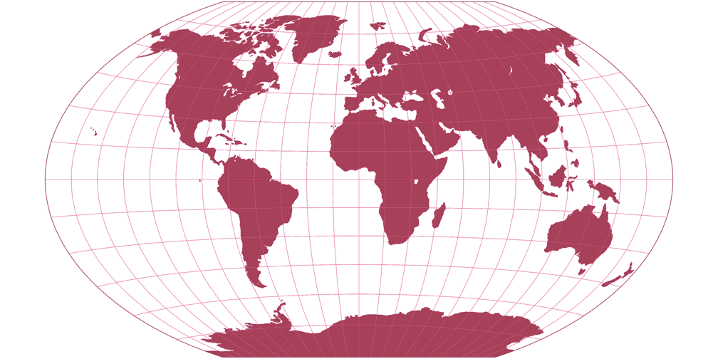 | Description | Winkel-Denner II (40°) Map Projection Image, red silhouette map. 15° graticule. | |||